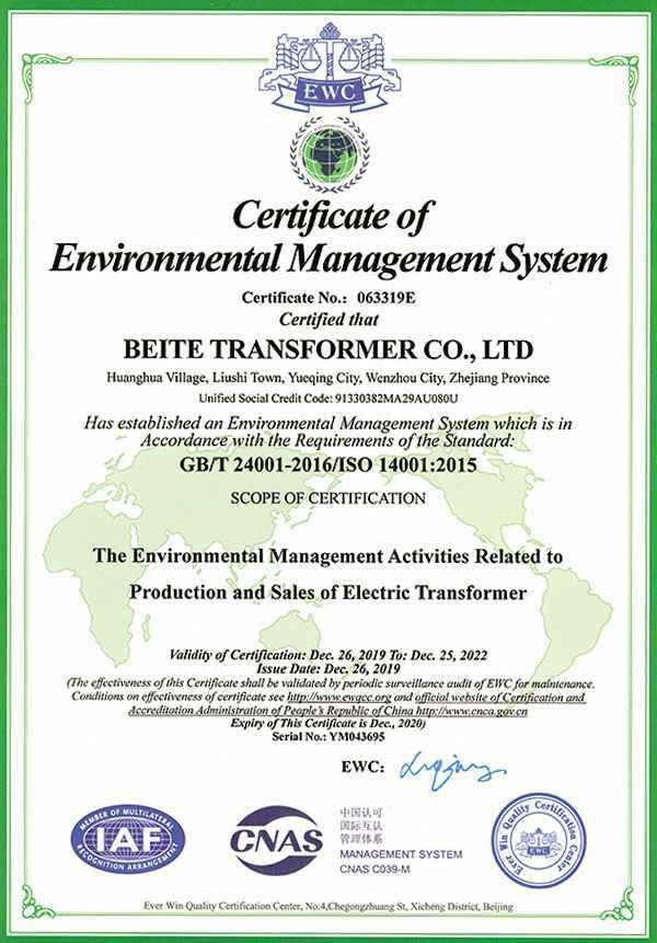 环境管理体系认证证书-英